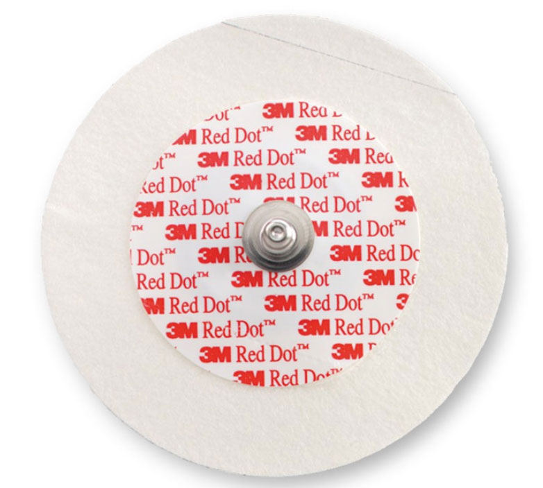 Elettrodo monouso a bottone con gel solido adesivo 3M RED DOT™ adatto per il monitoraggio di lunga durata, fino a 3 giorni dall’applicazione