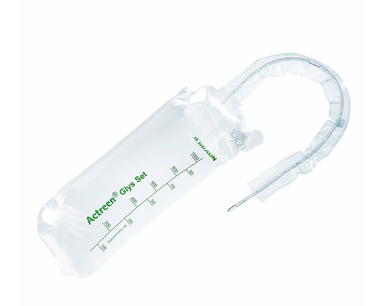 Actreen® Glys Set è costituito da un catetere in PVC privo di ftalati raccordato ad una sacca di raccolta.
