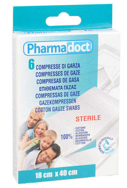 Confezione da 6 garze confezionate singolarmente.
