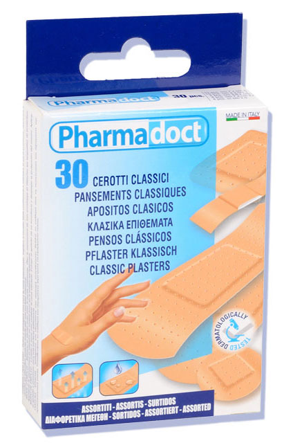Cerotti classici assortiti in 5 misure linea PHARMADOCT: utili per il primo soccorso, la medicazione ed il benessere.