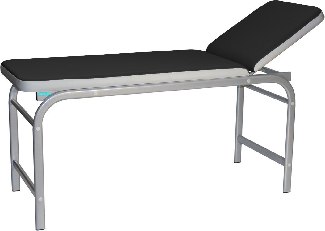 Lettino da visita in acciaio King Plus, con struttura in tubo ovale robusta ed elegante 50×25 mm, verniciata con polveri epossidiche colore grigio metallizzato. Rivestimento lavabile, ignifugo, materiale similpelle classe 1 con imbottitura ad alta densità. Testata regolabile tramite sistema meccanico.