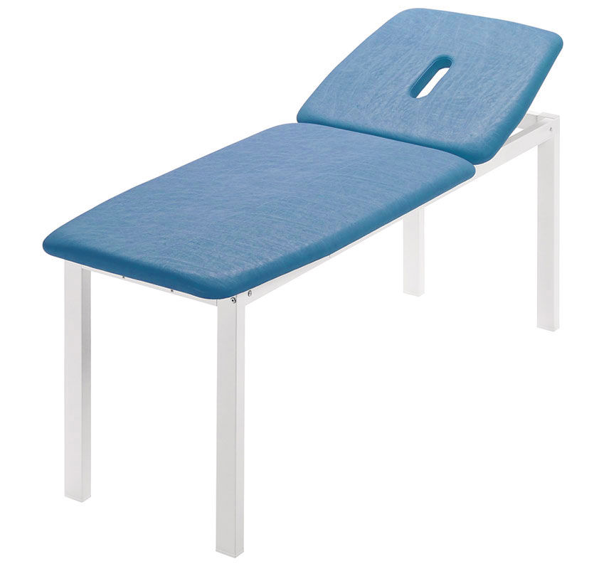 Lettino visita e trattamenti dal design avanzato, dotato di una sezione regolabile tramite movimento manuale. Robusta struttura in metallo smontabile, verniciata con polvere epossidica resistente ai graffi e alla corrosione. La particolare conformazione della sezione favorisce le operazioni sul paziente. La testata ha un ampio foro naso-bocca. L’imbottitura è in schiuma ad alta densità. I rivestimenti presentano un elevato livello di finitura e sono costituiti da similpelle di alta qualità e antifiamma. Il vinile è particolarmente resistente a disinfettanti, urina e sangue.