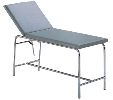 Lettino da visita con struttura tubolare di alluminio lucido, provvisto di alzatesta elevabile e regolabile mediante snodo cromato; ad uno snodo e due sezioni, è rivestito in morbida eco pelle lavabile. L'imbottitura è così composta: base in legno truciolare a basso contenuto di formaldeide, spugna in heliocell di densità Kg 25/mc di spessore 4 cm. Spedito smontato.