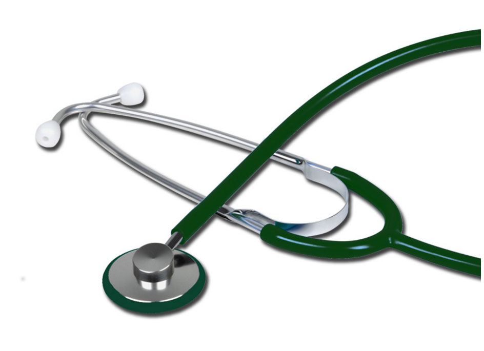 Fonendo tradizionale in alluminio, leggero ed economico. Confezionato in scatola di cartone.