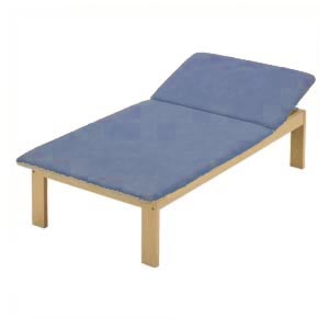 Lettino NEW RAMIN LT 100 in legno per trattamenti metodo Bobath di dimensioni cm 100 × 200 a due sezioni, testata con sistema di regolazione manuale.