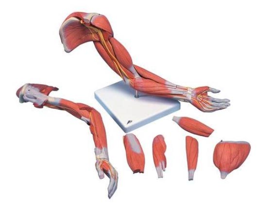 Modello su base di braccio a grandezza naturale dal quale si possono staccare i seguenti muscoli: