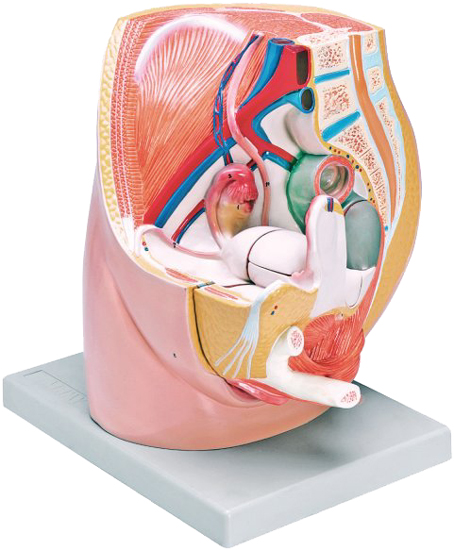 Questo modellino anatomico di dimensioni reali rappresenta l'apparato genitale femminile in 3 parti. Presenta una dissezione lungo la linea mediana sagittale del bacino. Le strutture interne del sistema urogenitale femminile sono rappresentate con un elevatissimo livello di dettaglio.