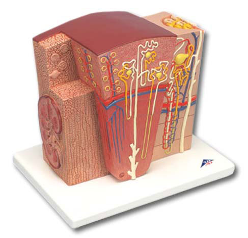 Questo modello estremamente dettagliato, è una rappresentazione molto ingrandita delle unità morfologico-funzionali del rene.